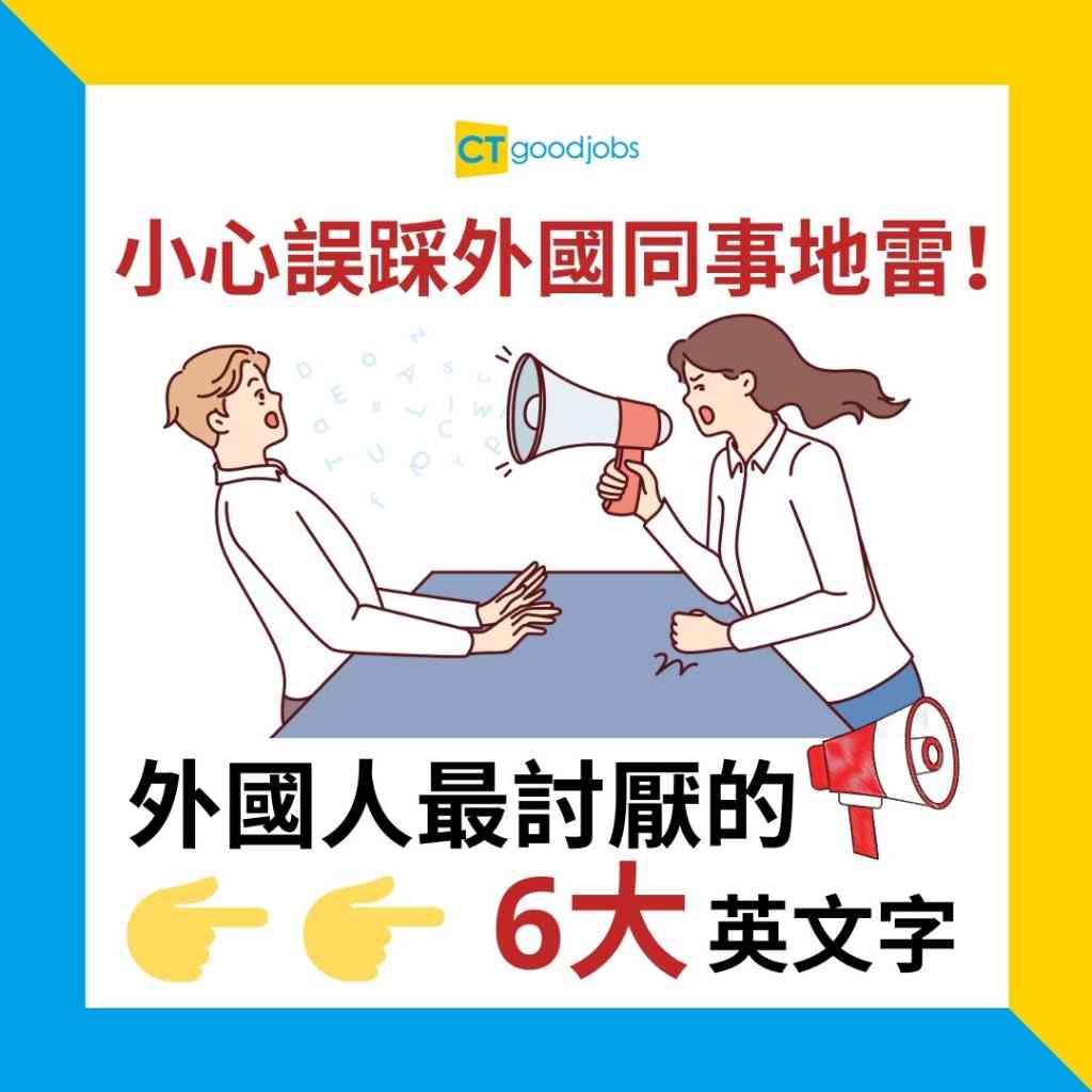 辦公室危機處處,一不小心講錯說話,很容易會成為眾矢之的,影響人際關係。以上是6個需要注意的英文用字,打工仔要小心誤踩外國同事地雷呀!
