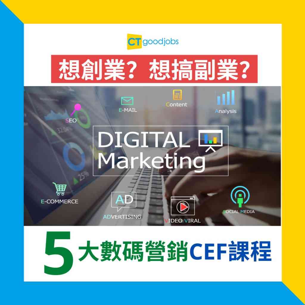 社交平台普及,數碼營銷是現今商業社會必不可少的技能,不論是想創業、想建立副業的你,還是營銷人員,都應該掌握最新的數碼營銷技巧,從而捉緊機遇。如果想加強網上營商成效,不妨善用$25,000持續進修基金(CEF),報讀以下5大課程。