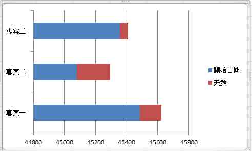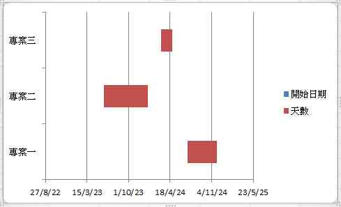 選取圖表的藍色部分(即開始日期欄),將藍色部分的圖案填滿中,選擇為「無填滿」。